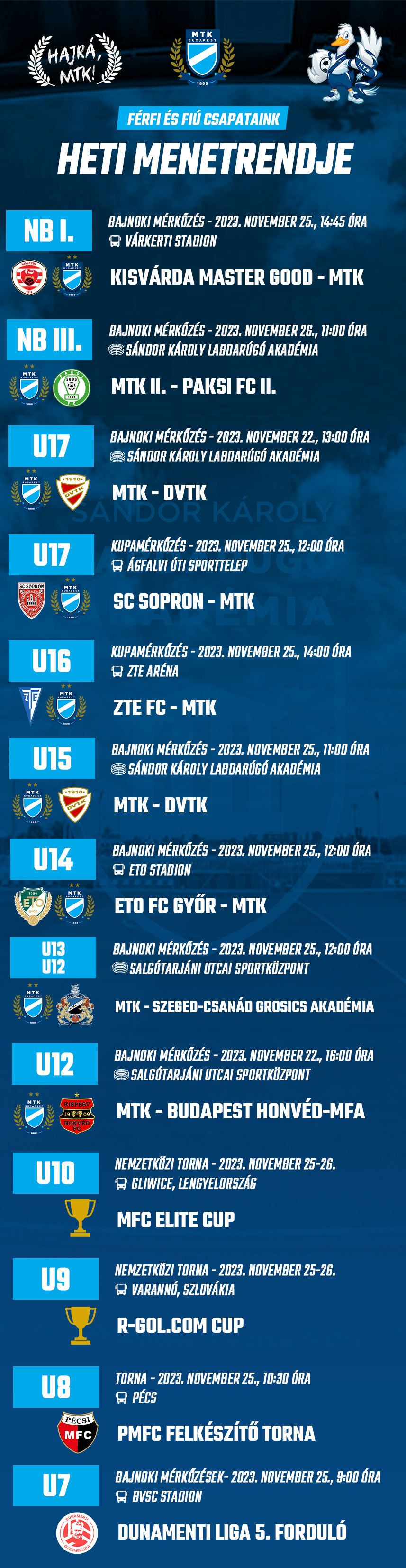A következő napok mérkőzéseinek időpontjai egy helyen!