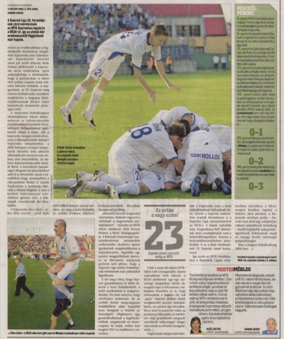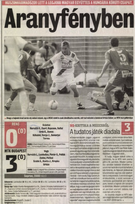 1. - 2008. 05. 26.: REAC-MTK Budapest 0-3, Soproni Liga, 29. forduló